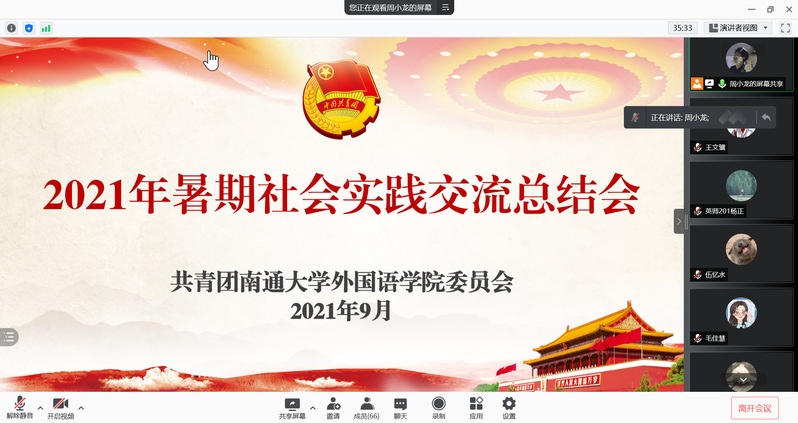 9月22日晚,外国语好色视频 举办2021年暑期社会实践线上总结交流会。