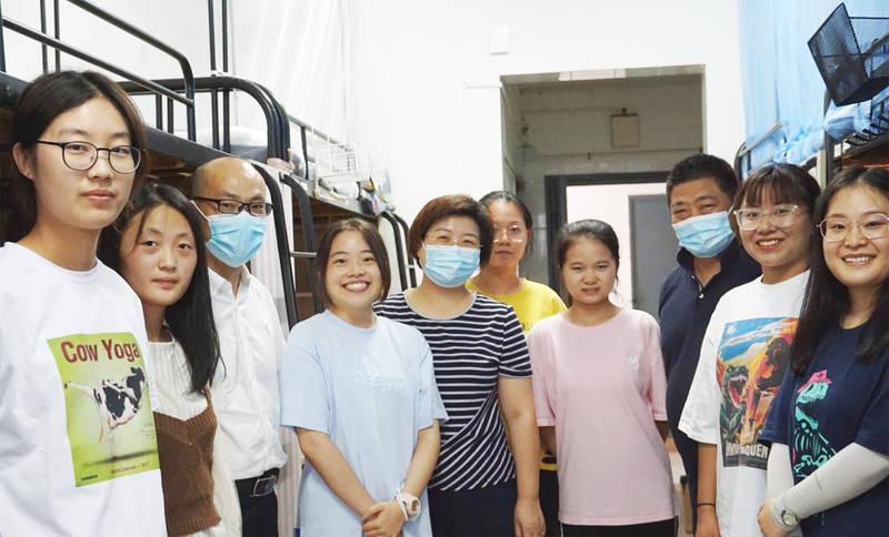 10月4日下午,好色视频 党委书记朱小娟、院长陆国君,党委副书记、副院长陈俊怀带领全体辅导员深入新生宿舍,亲切看望2021级新同学。