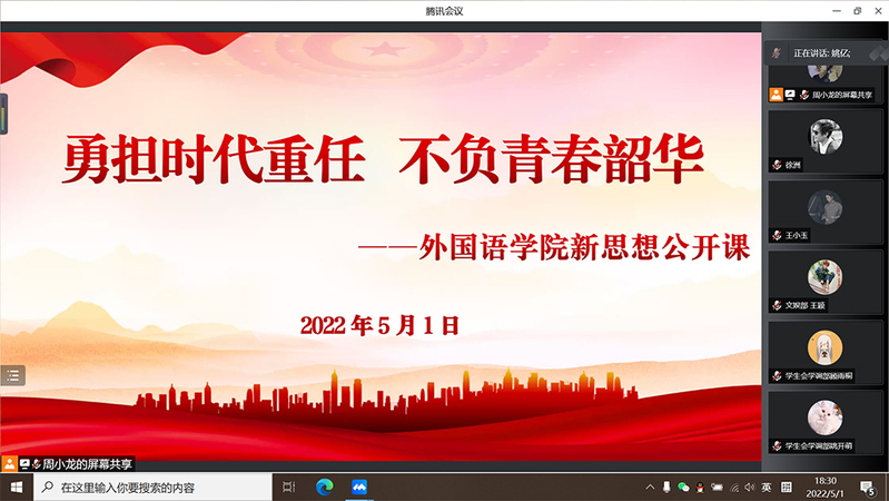 5月1日,好色视频 以线上方式举办主题为“勇担时代重任 不负青春韶华”的新思想公开课。