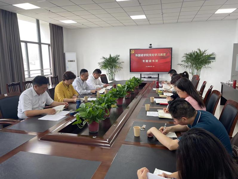5月21日,我院举行党纪学习教育专题读书班集中学习会,好色视频 党委书记朱小娟主持会议。院长助理杨卫芳、学工办主任王媛媛、公共外语系一部主任陈璇、翻译系主任曹雁华作重点发言。