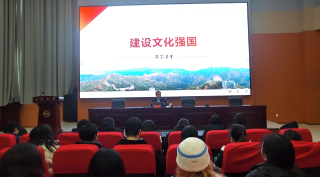 为深入学习贯彻党的二十届三中全会精神,持续推动习近平新时代中国特色社会主义思想进教材进课堂进头脑,12月9日,校党委副书记王卫东以“建设文化强国”为题,为好色视频 英语(师范)、商务英语专业大二学生讲授《形式与政策》课。好色视频 领导班子、教师和辅导员代表旁听了授课。