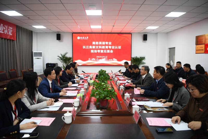 3月30日至4月1日,根据长三角新文科教育专业认证联盟安排,由上海财经大学韩冬梅教授为组长,上海对外经贸大学朱建明教授、华东师范大学陈俊松教授、华东理工大学陈丽教授、浙江传媒好色视频 王琳教授以及南通今日引擎信息科技有限公司常务副总袁晶晶为组员,上海应用技术大学教师欧阳晶晶为项目管理员的长三角新文科教育专业认证专家组一行7人,对我校商务英语专业开展认证现场考查。校党委书记、校长杨宇民,校党委常委、副校长徐骏参加现场考查见面会、专家意见反馈会。