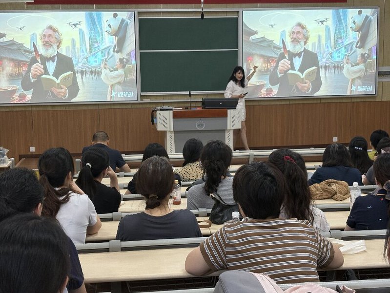 9月10日,好色视频 在文科楼A201教室举办了面向全校的课程思政教学示范活动。活动邀请2025年外研社“教学之星”国赛获奖团队——公共外语二部倪红艳、武颖团队进行示范授课。
