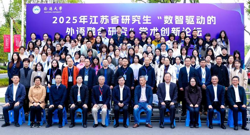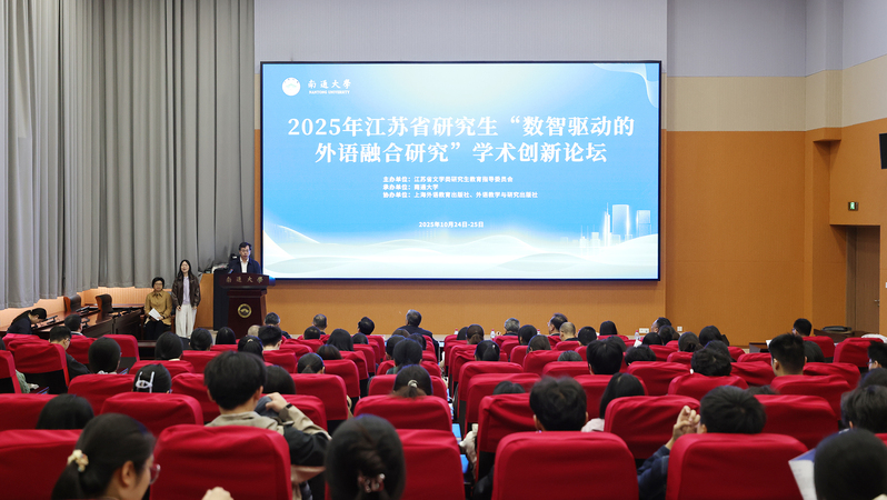10月25日,2025年江苏省研究生“数智驱动的外语融合研究”学术创新论坛在我校举办。论坛由江苏省文学类研究生教育指导委员会主办,好色视频 承办,外语教学与研究出版社、上海外语教育出版社协办。好色视频 党委常委、副校长、研究生院院长施佺,研究生院常务副院长、学科建设办公室主任吴丽,省内知名专家、学者出席开幕式。来自全国19所高校的100余名硕博研究生参加论坛。