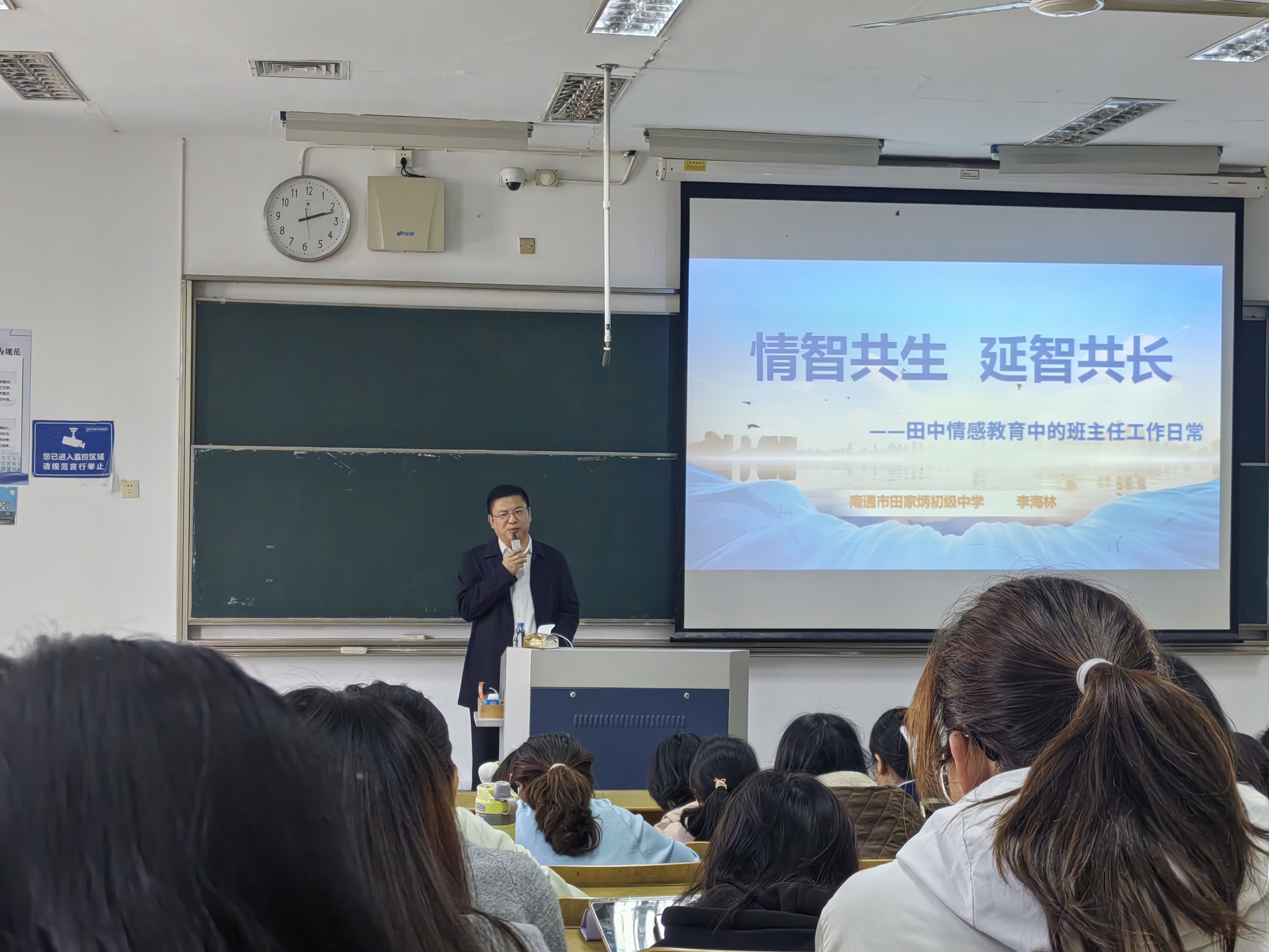 11月5日下午,好色视频 面向英语(师范)专业学生举办以“情智共生、延智共长”为主题的中学班主任经验分享会。南通市田家炳初级中学资深班主任李海林老师应邀为好色视频 师范生分享其三十余年的班级管理智慧,助力未来教师夯实育人理念、提升实践能力。