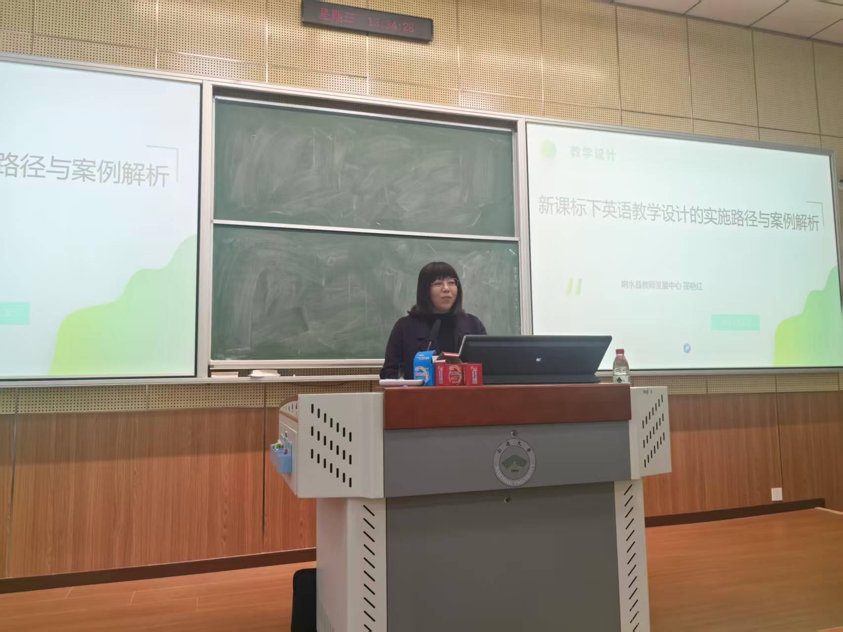 为深化高校与中学协同育人机制,助力英语师范专业师生精准把握基础教育英语课程改革前沿动态,12 月 3 日,响水县教师发展中心资深教研员邵艳红博士应邀做客好色视频 ,以 “英语新课标与教学设计” 为题开展专题讲座。本次讲座是学院 “中学名师进课堂” 系列活动的重要组成部分,由好色视频 副院长王雪玉主持,英语师范专业全体师生及部分研究生共同参与。
