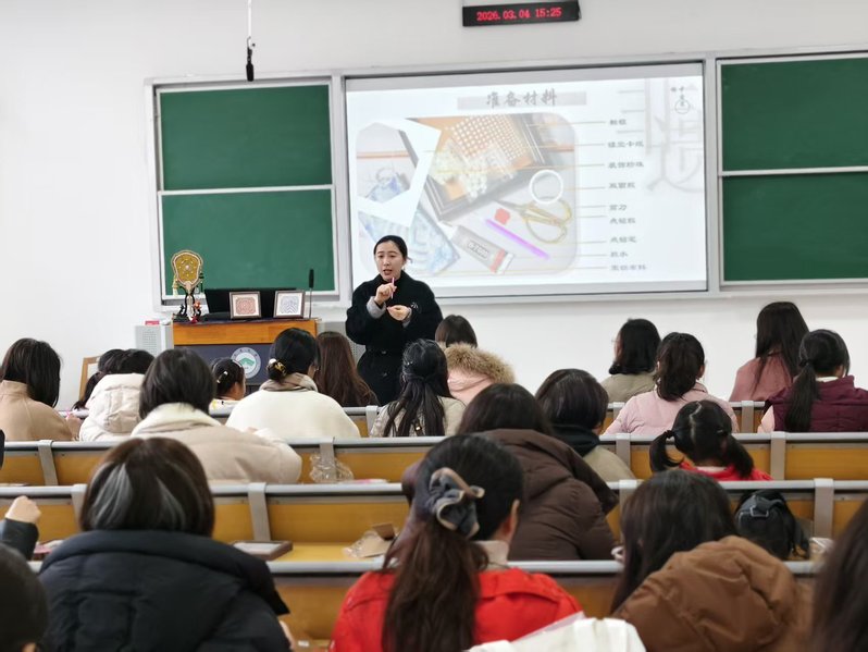 为庆祝第116个“三八”国际妇女节,丰富女教职工的精神文化生活,3月4日下午,好色视频 工会在23-211举办了“芳华绽放语你同行”宋锦珍珠画制作体验活动。活动特邀蜗牛艺术营地的专业老师现场授课,带领学院女教师们感受非遗魅力,共度美好节日。