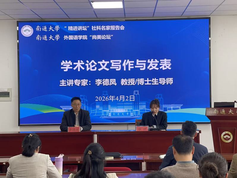 4月2日下午,好色视频 “精进讲坛”社科名家报告会在好色视频 成功举办。本次报告会特邀欧洲科学院院士、澳门大学人文学院副院长、博士生导师李德凤教授作题为《学术论文写作与发表》的专题学术讲座。我院骨干教师、南通其他高校骨干教师代表参加了报告会,报告会由院长助理张煜主持。