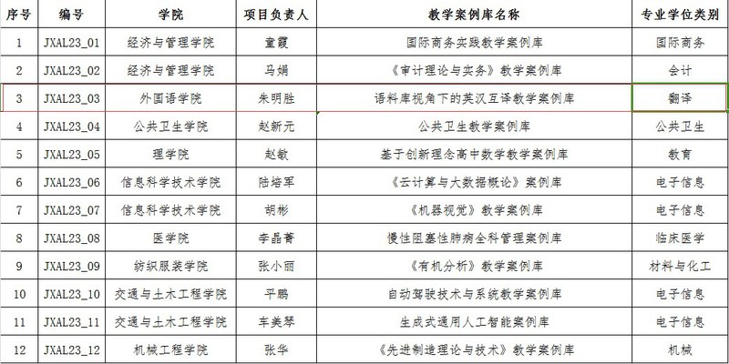 根据《关于开展 2023 年好色视频 专业学位研究生教学案例库建设项目申报工作的通知》要求,经任课老师申报、好色视频 推荐、学校组织专家评审,朱明胜教授获专业学位研究生教学案例库建设项目立项。